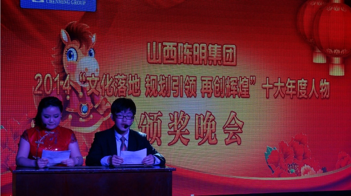2014年2月16日15時許,陳明集團2014“文化落地、規(guī)劃引領、再創(chuàng)輝煌”十年度人物頒獎聯(lián)歡會于桔子酒店隆重開幕。本次聯(lián)歡會對陳明的十大人物給予了表彰,并邀請每位員工家屬到場觀看員工們自編自演的節(jié)目。